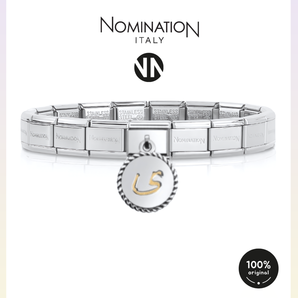 اسوارة نومينيشن مقاس 17حرف ي شكل نازل لون فضي