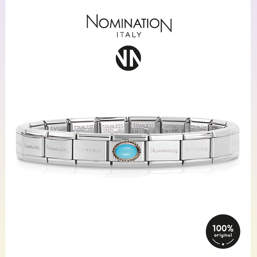 اسوارة نومينيشن مقاس 17 حجر لون تركواز