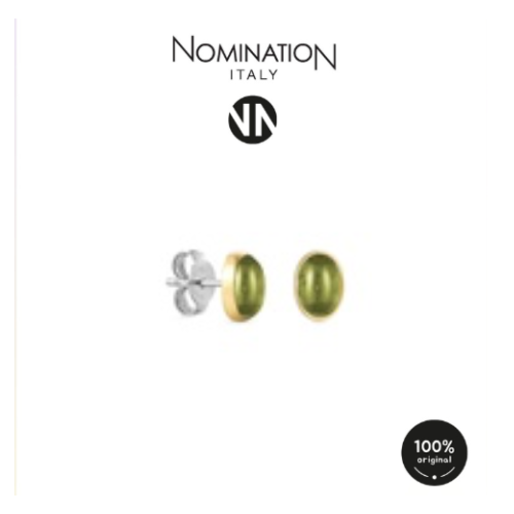 حلق نومينيشن حجر زيركون لون اخضر اطار ذهبي