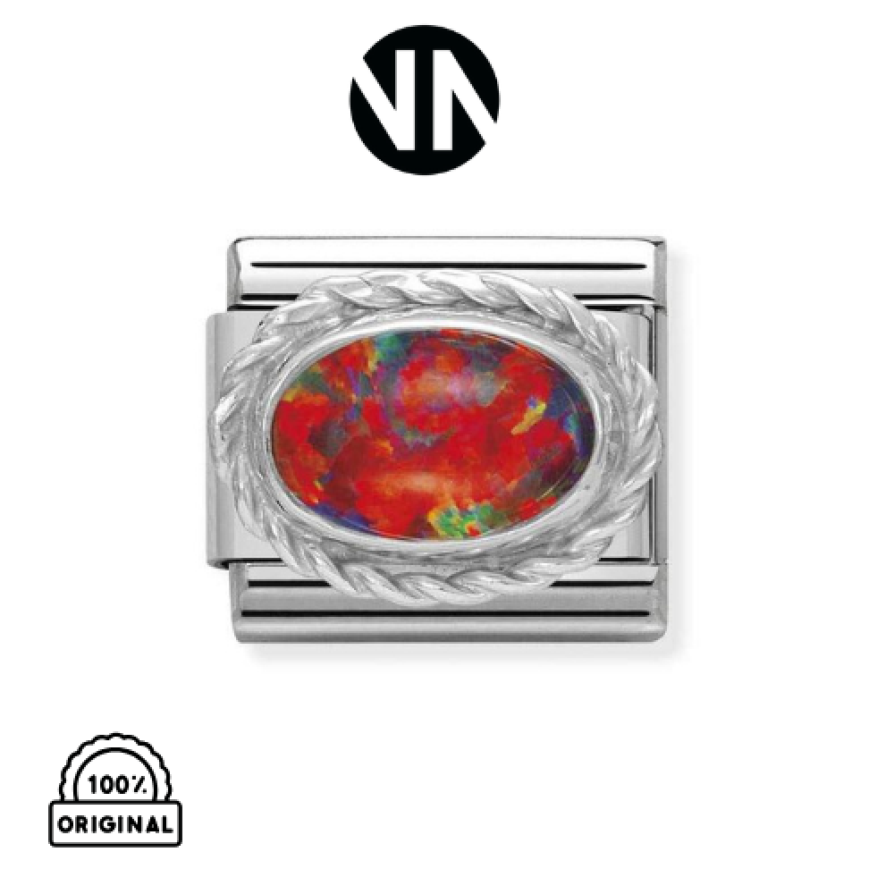 شكل تركيب كلاسيك حجر بيضاوي احمر اوبال مع فريم فضي