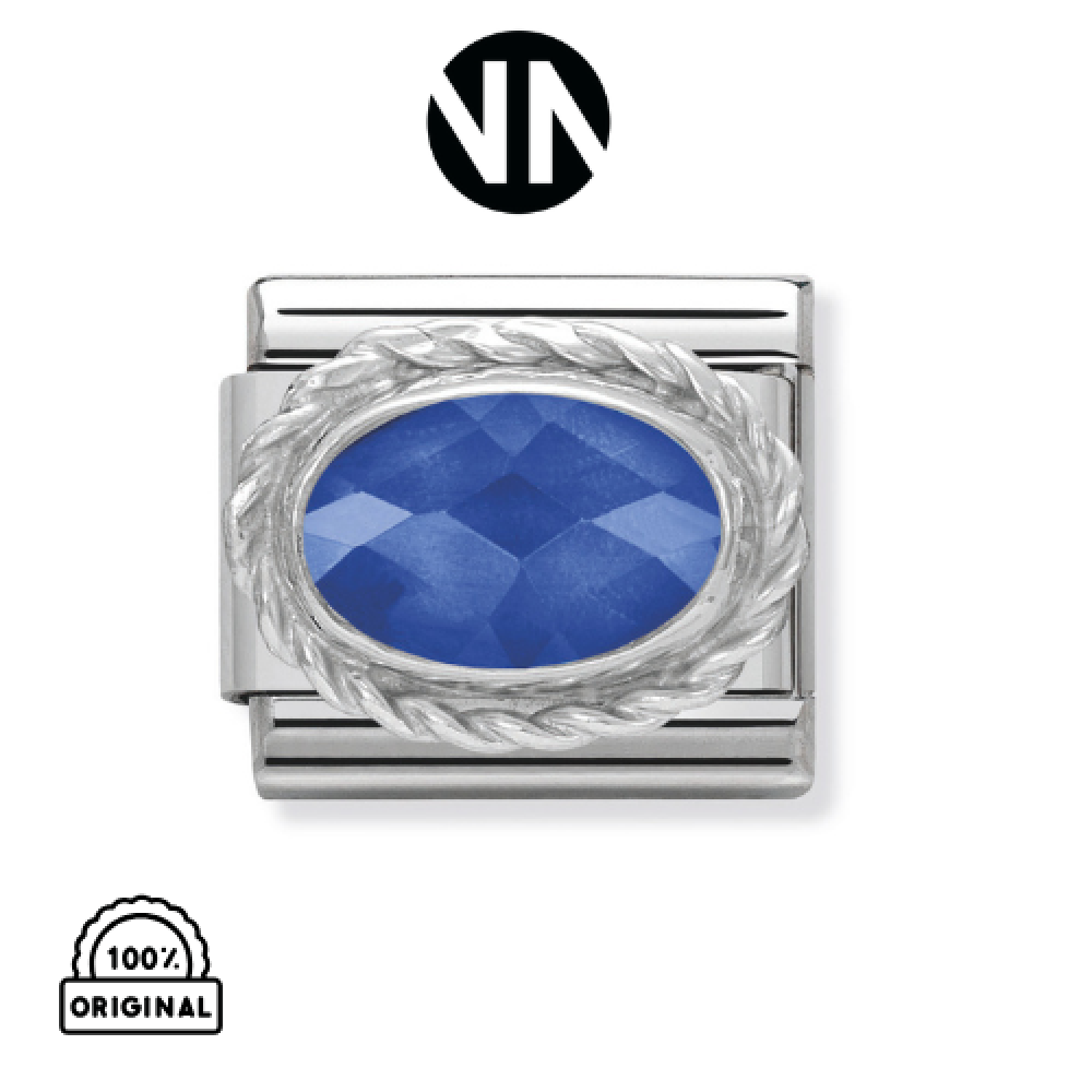 شكل تركيب كلاسيك حجر زيركون بيضاوي ازرق مع فريم فضي