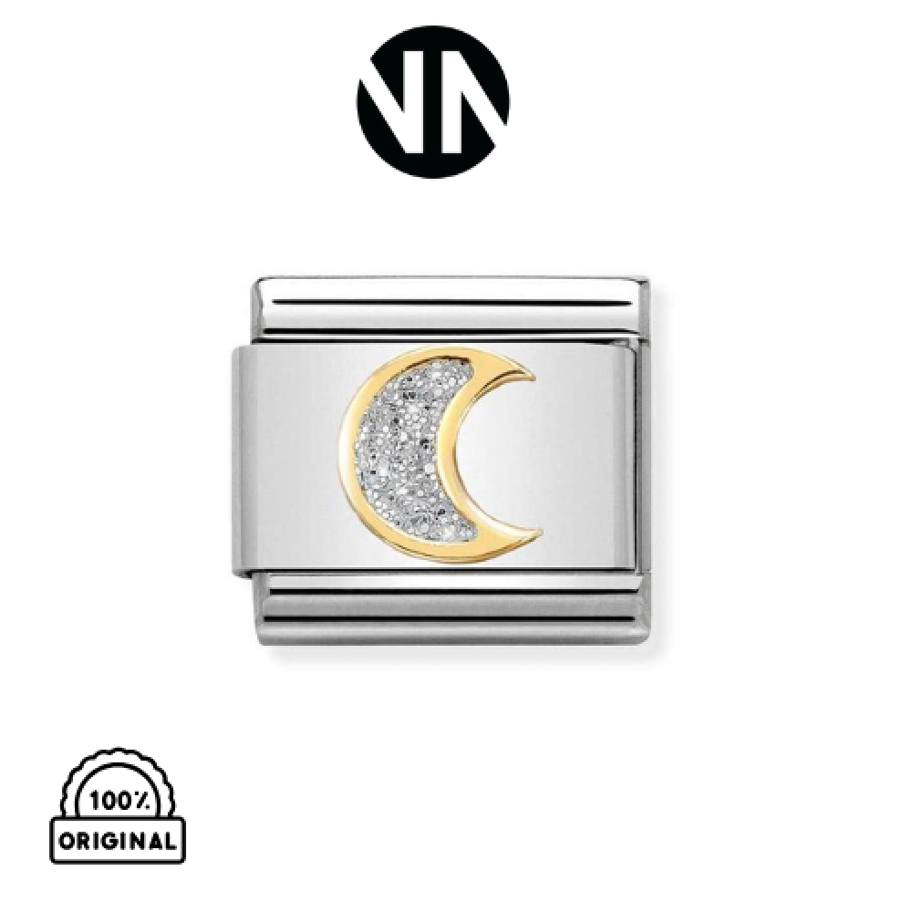 رموز لامعة كلاسيكية قابلة للتركيب من الفولاذ والمينا والذهب عيار 18 قيراطًا على شكل قمر فضي